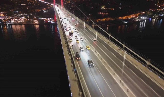 İki kıtayı birbirine bağlayan 15 Temmuz Şehitler Köprüsü üzerinde seyir halindeki bir aracın lastiği patladı. Lastiğin patladığını fark eden araç sürücüsü, otomobilini sağ şeride çekerek köprünün orasında durmak zorunda kaldı. Olay yerine gelen polis ekipleri, aracın bulunduğu şeridi trafiğe kapattı. Kapanan şeritle beraber Avrupa Yakası'ndan Anadolu Yakası'na geçmek isteyen araç sürücüleri kilometrelerce kuyruk oluşturdu. Meydana gelen araç kuyruğu havadan görüntülendi. Lastiği patlayan araç ise çekici yardımıyla köprüden kaldırıldı. Kısa bir sürenin ardından trafik normale döndü.