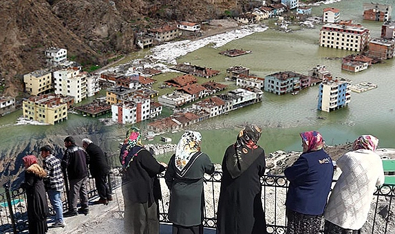 Yusufeli Barajı’nda su yüksekliği 99,32 metreye, depolanan su miktarı 183,63 milyon metreküpe ulaştı. Karayla bağlantısı kesilen eski yerleşim yerinde köylerin yanı sıra, cadde, sokak, yol ve köprüler dipte kalırken, sulara gömülen binaların çoğu da görünmez oldu. 153 yıllık tarihinde 7’nci kez taşınan ilçelerinin, anılarla birlikte suya gömüldüğü anlara tanıklık edenler, doğup büyüdükleri yeri son kez uzaktan izliyor. Kent dışından suya gömülen ilçeyi görmeye gelenler ise duygusal anlar yaşıyor. Yeni ilçe merkezine ulaşım da Yusufeli Merkez Viyadüğü tamamlana kadar Sarıgöl- Öğdem güzergâhından sağlanıyor. Eski yerleşim yerindeki evinin ve bahçesinin su altında kaldığını söyleyen esnaf Muzaffer Cellat, “Burada geçmişimizi, sular altında kalan 55 yıllık evimizi ve bahçemizi seyrediyoruz. Ağlamamak için kendimi zor tutuyorum. 55 yıl esnaflık yaptım. Şu anda sular evimin birinci katına ulaştı” dedi. Sadenur Tamyürek de “Suyun altında kalan anılarımızı, yaşanmışlıkları ve hatıralarımızı hüzünle seyrediyorum. Buradan geçmiş hayatımıza bakıyorum. 40 yılımız sular altında kaldı. Şimdi yeni yerleşim yerinde yeni bir yaşama alışmaya çalışıyoruz” diye konuştu.