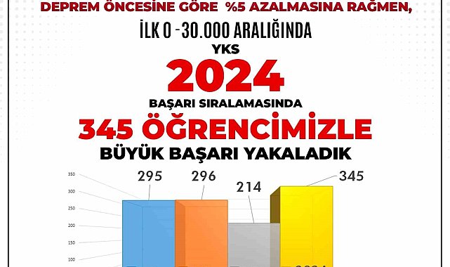 6 Şubat depreminin ardından ildeki öğrenci sayısı önceki yıllara göre yüzde 5 azalmasına rağmen ilin YKS başarı grafiği, geçmiş yıllara göre büyük artış gösterdi.