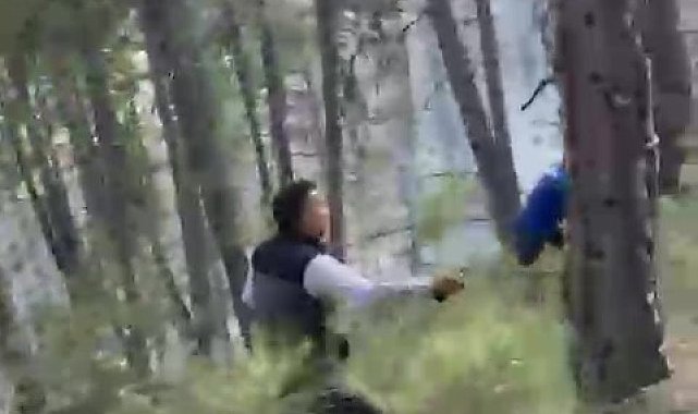 Bolu'da orman yangınına müdahale eden ekipler, rüzgarın ters esmesiyle alevlerin arasında kaldı. Ekiplerin kaçış anları cep telefonu kamerasına yansıdı.