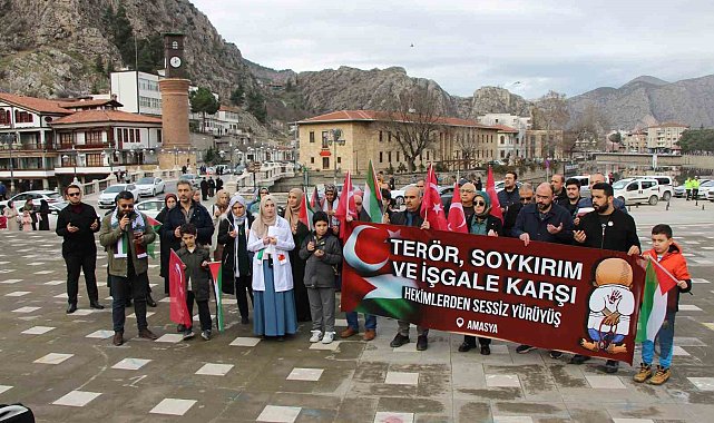 Amasya'da hekim ve sağlık çalışanları İsrail'in Gazze'de gerçekleştirdiği soykırım, işgal ile insanlık suçunu kınamak üzere sessiz yürüyüş yaptı.