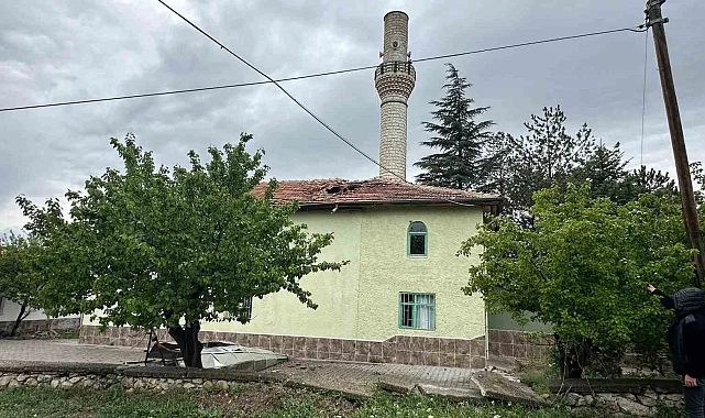 Ankara'nın Elmadağ ilçesinde etkili olan şiddetli rüzgar nedeniyle 2 caminin minareleri yıkıldı.