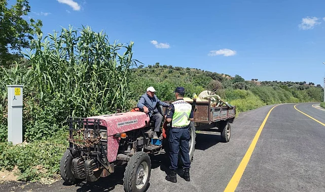 Aydın'ın Germencik ilçesinde jandarma ekipleri tarafından traktör sürücülerine ROPS sistemi ve reflektör konularında bilgilendirildi.