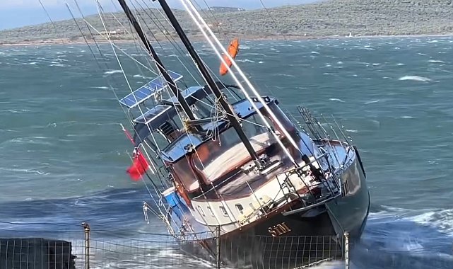 Meteorolojiye göre saatte 65 ila 70 kilometre ve zaman zamanda yaptığı hamlelerle 75 ila 80 kilometreye ulaşan fırtına nedeniyle Ayvalık körfez içinde demirli bir yelkenli de kıyıya sürüklendi.