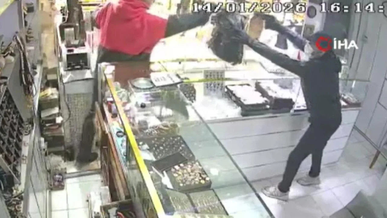 Öte yandan, soygun anı iş yerinin güvenlik kamerası tarafından saniye saniye kaydedildi. Görüntülerde, silahlı ve maskeli şüphelinin kuyumcuya girmesi, iş yeri sahibine silah doğrulttuğu anlar kaydedildi. İçerde iş yeri sahibiyle konuşan müşteri kadının panik yaşadığı görüldü.
