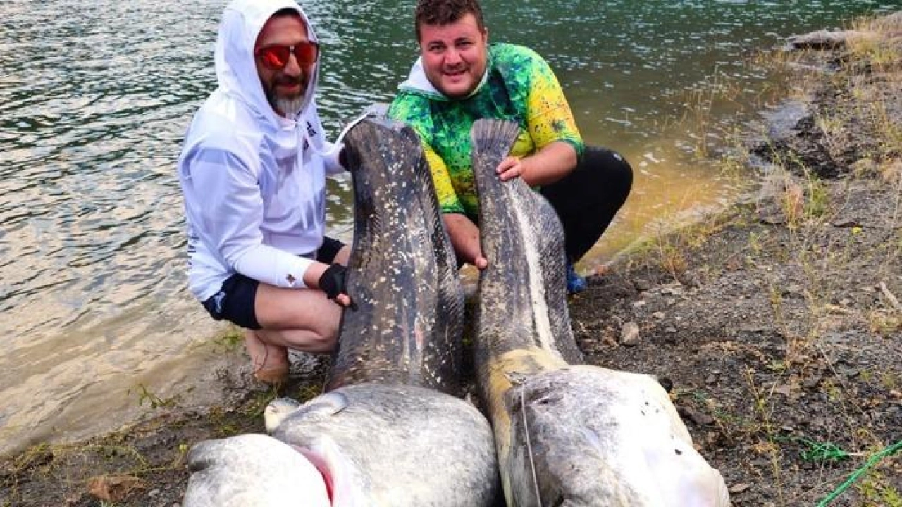 Samsunlu amatör balıkçılar Sercan Çakar (35), Ömer Taş (38) ve Vahap Kavaklı (42), balık avlamak için Artvin’deki Borçka Barajı’na gitti. Baraj gölünde sabah saatlerinde oltalarını suya bırakan balıkçılar, birkaç saat süren bekleyişin ardından büyük balıkların oltalarına takıldığını fark etti. Oltalarını çeken balıkçılar yaklaşık 2 metre uzunluğunda ve her biri yaklaşık 100 kilo ağırlığında iki yayın balığını sudan çıkardı. Balıkçılar, balıkların fotoğraflarını sosyal medya hesaplarından paylaştı. (DHA)