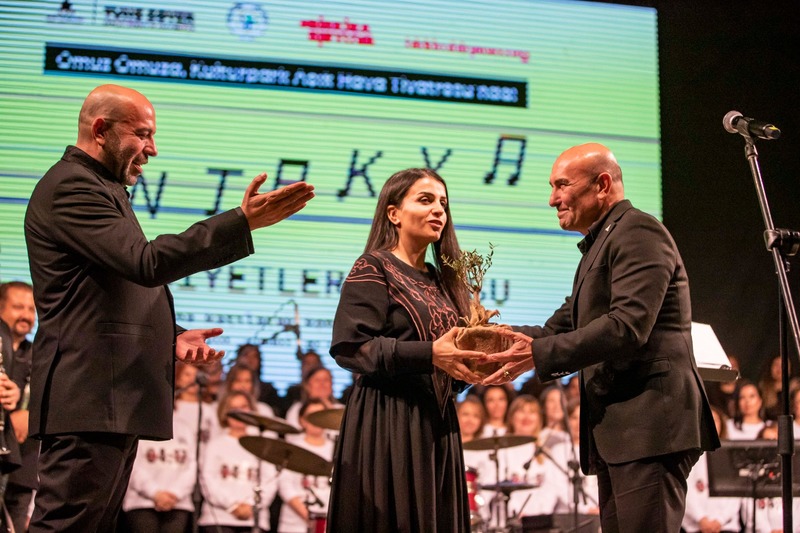 İzmir Büyükşehir Belediyesi’nin depremzedeler için başlattığı “Bir Kira Bir Yuva” kampanyası kapsamında düzenlenen konserde Antakya Medeniyetler Korosu, sürpriz sanatçılarla Kültürpark’ta seyirciyle buluştu. Koro şefi Yılmaz Özfırat’ın sahneye davet ettiği Başkan Soyer, “Bu toprakların üzerinde yaşayan hiç kimse hayatının sonuna kadar bu acıyı unutamayacak. Bundan sonra hepimizin bir yarısı eksik” dedi.