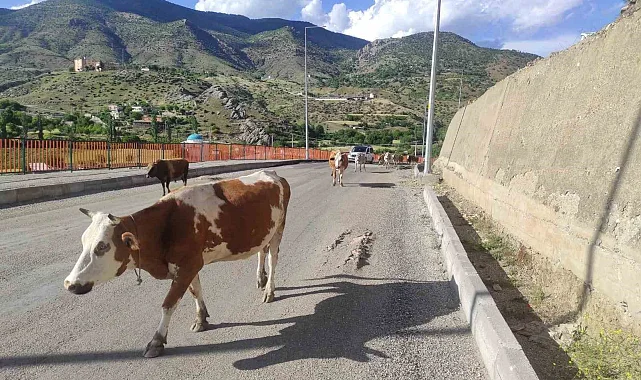 Batman'ın Sason ilçesinde sahipleri tarafından başıboş bırakılan inekler, sürücülere zor onlar yaşatarak trafiği tehlikeye sokuyor.