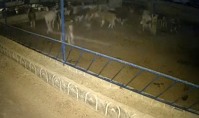 Hayvanların kurtlardan kaçışları ve kurtların çıkışları da güvenlik kamerası tarafından kaydedildi.