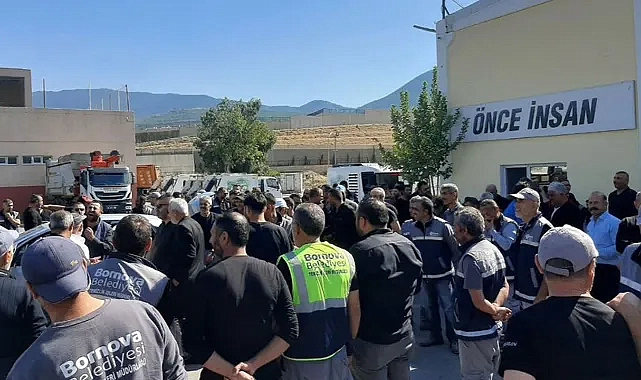 Belediyenin park, temizlik ve fen işleri birimlerinde çalışan işçiler, Genel-İş Sendikası öncülüğünde Bornova Velediyesi önünde toplandı.