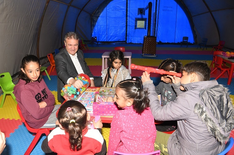 Bornova Belediye Başkanı Dr. Mustafa İduğ, depremde en büyük travmayı çocukların yaşadığını söyleyerek, “Millet olarak önce çocuklarımızın eski hayatlarına kavuşmalarını sağlamamız gerekiyor. Eskisi gibi gülmelerini sağlamak, en azından yavaş yavaş da olsa onları gülümsetebilmek çok değerli. Bunun için elimizden geleni yapıyoruz. Bu çabamızda bize destek olan herkese de gönülden teşekkür ediyoruz” dedi.