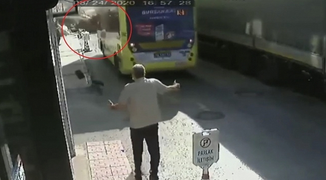 Yaklaşık 3 metre uzayan tentenin demiri camı kırarak otobüsün içerisine girdi. Şans eseri o esnada otobüste fazla yolcu olmaması muhtemel bir faciayı engelledi. O anlar işyerinin güvenlik kamerasına da yansıdı