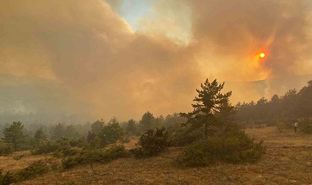 Çankırı'nın Ilgaz ilçesine bağlı Meydan köyü mevkiinde ormanlık alanda çıkan yangın, kısa sürede büyüyerek geniş bir alana yayıldı. Bölgeye sevk edilen itfaiye ekiplerinin ve arazözlerin yangına müdahalesi yaklaşık 1 saattir sürüyor. Yangına havadan müdahale etmek amacıyla helikopter desteği de sağlandı. Ekipler, yangını kontrol altına almak için çalışmalarını havadan ve karadan sürdürüyor.