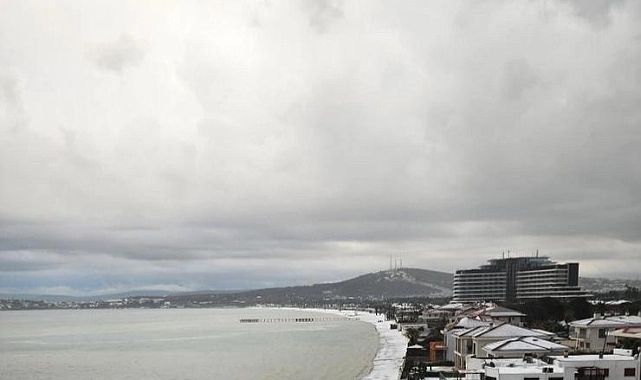 İzmir'in Çeşme ilçesinde sabah saatlerinde şiddetli dolu yağışı etkili oldu.