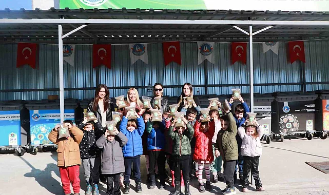 Sıfır Atık Atölyesinde görsel becerilerini arttırmak için boyama etkinliği yapan minikler, daha sonra 'Maviden Yeşile Sürdürülebilir Bir Geleceğe Projesi' çerçevesinde kurulmuş olan kompost tesisini de gezerek, deniz yosunları ve organik atıkların nasıl verimli toprağa dönüştürüldüğü hakkında bilgiler aldı. Ardından etkinliğe katılan minik öğrencilere organik toprak hediye edildi.