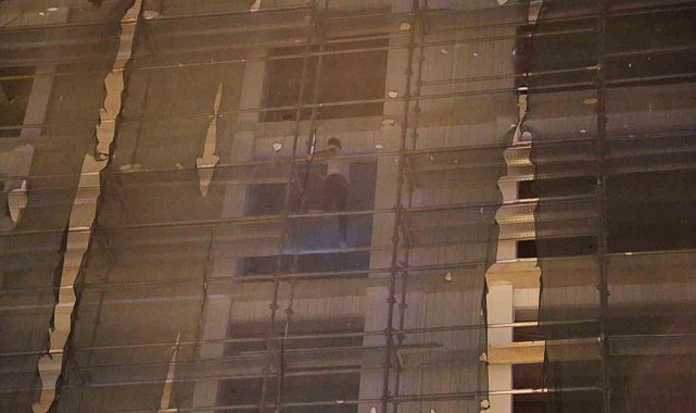 7 katlı inşaatın 5'inci katında binanın dış iskelesinde şahsı bulan polis ekipleri, uzun süre şahsı ikna etmek için uğraştı. İsminin Süleyman olduğu öğrenilen şahsın, polislere eşinin çocukları ile birlikte Kadın Sığın Evi'nde olduğunu ve çocukları göstermediğini, kendisine yardımcı olunması halinde ineceğini belirttiği öğrenildi. Polislerin kendisine yardım sözü vermesi üzerine iskeleden inen şahıs, ifadesi alınmak üzere polis merkezine götürüldü. Şahsın binadan inişi sırasında yüzünün gözükmemesi için inşaatın bekçisi tarafından şapka verildiği görüldü.