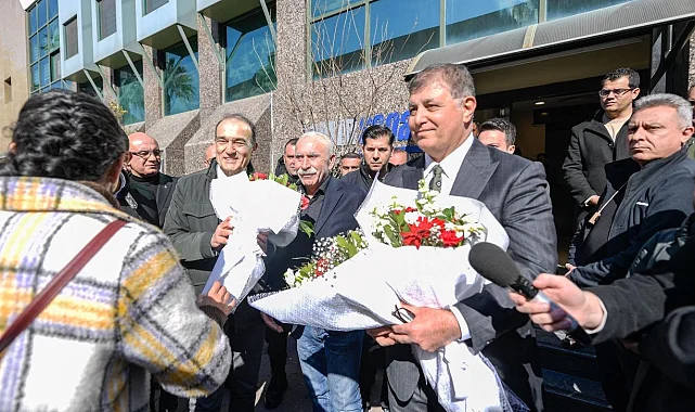 İzmir Büyükşehir Belediye Başkanı Dr. Cemil Tugay, kendisini çiçeklerle ziyarete gelerek teşekkürlerini sunan sendika başkan ve temsilcileriyle bir araya geldi.