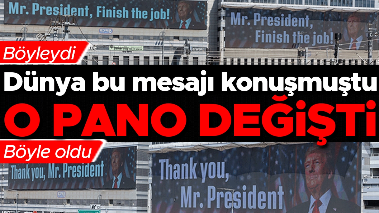 ABD'nin İran'a yönelik saldırılara katılmasını sağlamak amacıyla İsrail'de yürütülen kamuoyu kampanyası kapsamında, Trump'a hitaben "Bay Başkan, işi bitir" ifadesinin yansıtıldığı panoda, şimdi de "Teşekkürler Bay Başkan" ifadesine yer verildi.