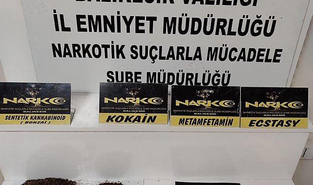 Balıkesir İl Emniyet Müdürlüğü Narkotik Suçlarla Mücadele Şube Müdürlüğünce yapılan çalışmalar neticesinde geçtiğimiz gün Balıkesir merkezde bulunan uygulama noktasında durdurulan bir araca yönelik operasyon düzenlendi. Narkotik ekipleri tarafından araç içerisinde yapılan incelemelerde çeşitli bölmelere gizlenmiş şekilde 222 gram sentetik kannabinoid, 30 gram metamfetamin, 30 adet ecstacy hap, 1,87 gram kokain, bir uyuşturucu madde içiminde kullanılan cam aparat, bir uyuşturucu madde öğütücü aparat ele geçirildi. Uyuşturucu madde ticareti suçundan 4 şüpheli gözaltına alınarak gerekli tahkikata başlandı.