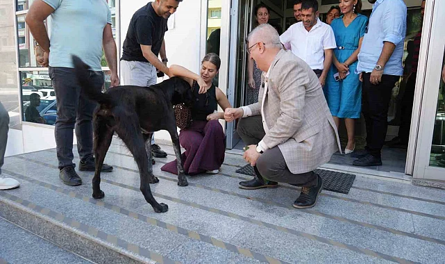 Edremit Belediye Başkanı Mehmet Ertaş, sahipsiz bir sokak köpeğini sahiplendi.