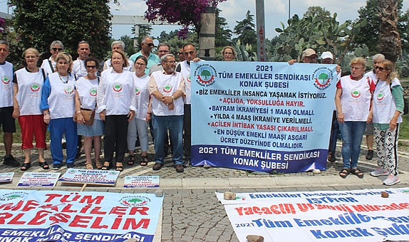 O masada emekliler olmalıBasının açıklamasının ardından konuşan Tüm Emekliler Sendikası İzmir Şube Başkanı Yardımcısı İbrahim Yılmaz ise, emekli maaşlarıyla ilgili yapılan görüşmede masada emeklilerin olması gerektiğini söyledi. Yılmaz, “O masada emeklilerin temsilcileri olmalı ve emeklilerin geçim sıkıntılarını o arkadaşlar anlatmalı. Oysa şu anda masaya çağırılan konfederasyonlarda asgari ücretin yanında emekli maaşlarını da konuşuyorlar. Biz bu arkadaşları kınıyoruz. Bu masada mutlaka emekliler olmalı ve emekliler kendi haklarını savunabilmeli” dedi.