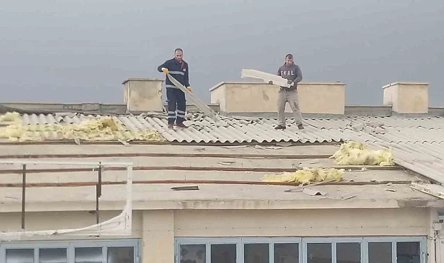 Çorum'un Alaca ilçesinde etkili olan fırtına, iş yerlerinin çatısını uçurdu, ağaçları devirdi.