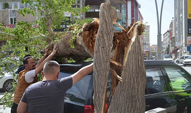Konya'nın Ereğli ilçesinde etkili olan fırtına ağaçları devirdi, çatıları uçurdu. Cadde kenarındaki bir ağaç ise park halinde cipin üzerine devrildi.