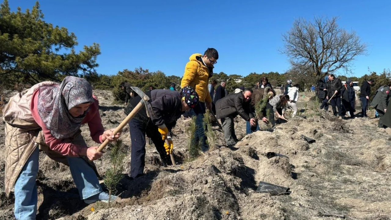 14 Mart Tıp Bayramı kapsamında 'Hep Birlikte Geleceğe Nefes' sloganıyla ağaç dikimi etkinliği gerçekleştirildi. Yörükçayır Mahallesi'nde düzenlenen etkinlikte sağlık çalışanları ve katılımcılar bir araya gelerek 14 Mart Tıbbiyeliler Ormanı için fidan dikti. Doğaya katkı sunmak, çevre bilincine dikkat çekmek ve gelecek nesillere daha yeşil bir çevre bırakmak amacıyla gerçekleştirilen etkinlikte her bir fidan umut ve yaşamın simgesi olarak toprakla buluşturuldu. Sağlık hizmetlerini büyük bir özveriyle sürdüren sağlık çalışanları, bu anlamlı günde sadece insan sağlığı için değil aynı zamanda doğa ve çevre için de sorumluluk alarak örnek bir dayanışma sergiledi.