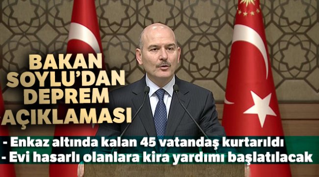 İçişleri Bakanı Süleyman Soylu, Elazığ'daki depremin ardından enkaz altında kalan 45 vatandaşın kurtarıldığını bildirdi.