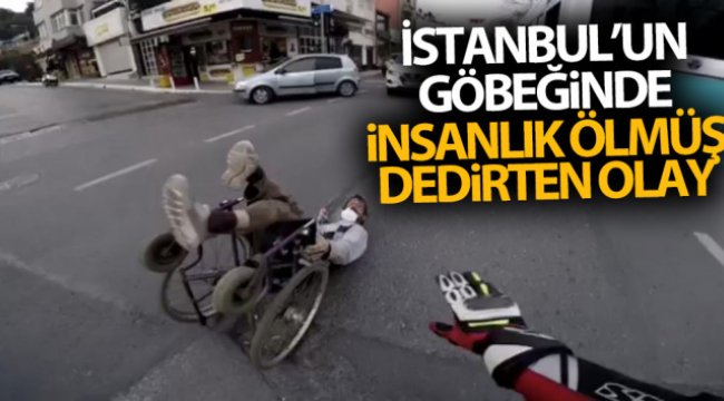 Adamın devrildiğini gören çevredeki sürücüler ve vatandaşlar dönüp arkasına bile bakmadan yoluna devam etti. Adamı o halde gören motosiklet sürücüsü Buğra Redkan, koşarak geldiği adamı sandalyesi ile birlikte kaldırdı. Ardından adam kendi imkanlarıyla yol kenarına doğru gitti. Yaşananlar ise kask kamerasına yansıdı.