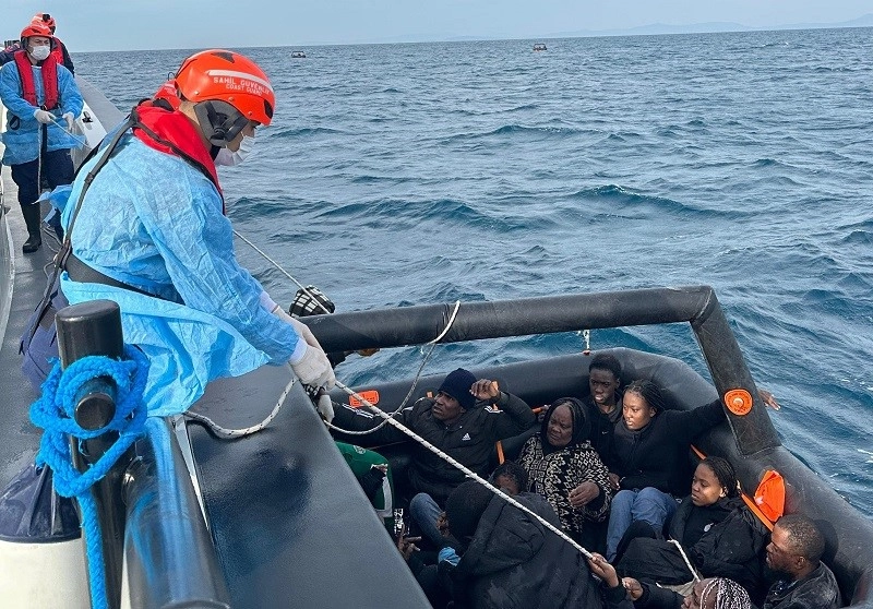 Sahil Güvenlik Komutanlığı ekipleri, 14 Aralık günü saat 12.15 sıralarında, Menderes ilçesi açıklarında can salları içerisinde bir grup düzensiz göçmen olduğu bilgisinin alınması üzerine harekete geçti. Yunanistan unsurlarınca Türk kara sularına geri itildiği belirlenen 4 can salı içerisindeki toplam 57 düzensiz göçmen, görevlendirilen Sahil Güvenlik botları tarafından kurtarıldı.