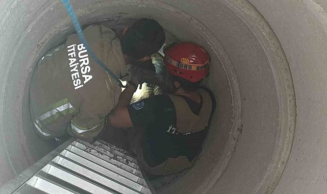 Bursa'nın İnegöl ilçesinde kapağı açık olan rögara düşen küçükbaş hayvan, itfaiye ekiplerince kurtarıldı.