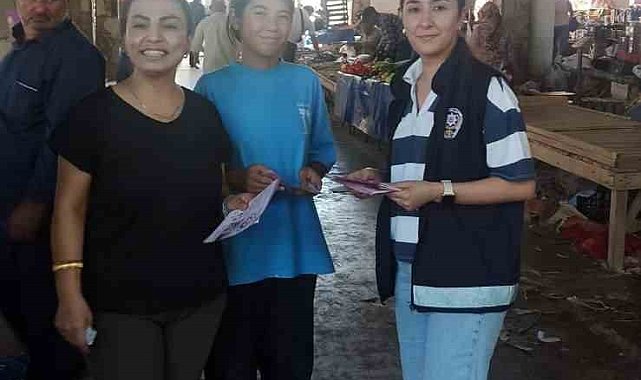 Karacasu İlçe Emniyet Amirliği, kadına karşı şiddetin önlenmesine yönelik bilgilendirme kampanyası kapsamında pazarcı esnaflarına ve pazar yerindeki vatandaşlara yönelik bilgilendirmelerde bulundu.