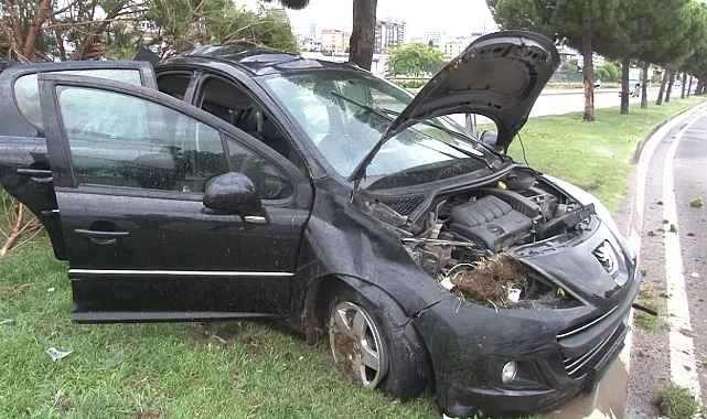 Kartal'da sürücüsünün direksiyon hakimiyetini kaybettiği otomobil kontrolden çıkıp yolun ortasındaki ağaçlara çarparak durabildi. Kazada sürücü dahil 3 kişi yaralandı.