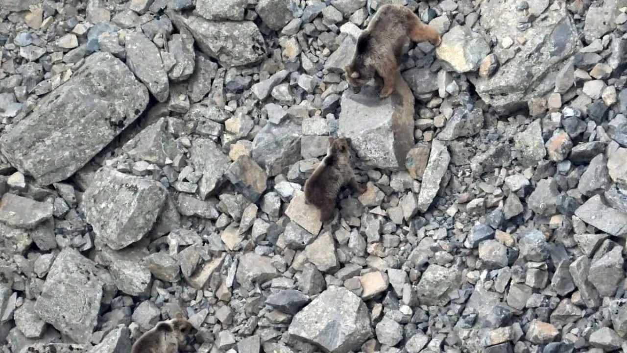 Erzurum’un İspir ilçesinde kış uykusundan uyanan ayı ailesi kameralara yansıdı.