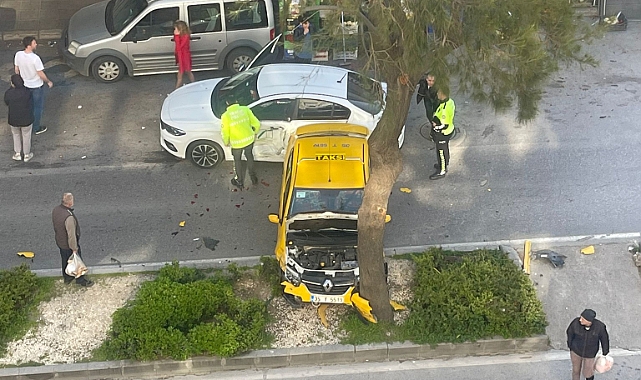 Konak’ta Karataş Lisesi’nin önünde bir kaza gerçekleşti. Sabah saat 09.00 civarında gerçekleşen kazada kontrolünü kaybeden taksi sürücüsü önce bir araca daha sonra da yol üstünde bulunan bir ağaca çarparak durdu. Olayda emniyet kemeri takılı kalan sürücü için bölgeye ambulans sevk edildi. İki aracında hasar aldığı kaydedildi.