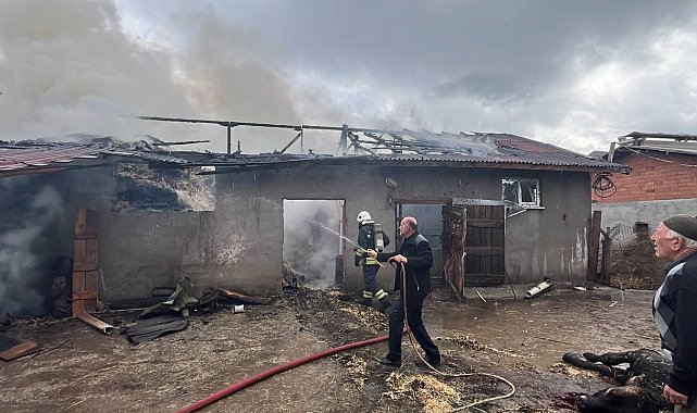 Yangın sebebiyle samanlık ve ahır küle döndü, 3 katlı evde ise büyük çapta hasar meydana geldi.
