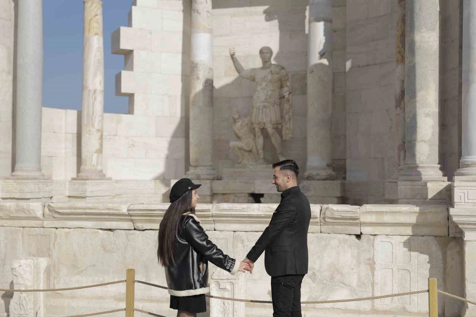 Denizli'de Seleukoslar Kralı 2. Antiokhos Teos'un eşi Laodike adına kurduğu antin kent, ilk kez yapılan sıra dışı bir evlilik teklifine ev sahipliği yaptı. Antik kentin aslı gibi restore edilen Anıtsal Traian Çeşmesi önünde erkek arkadaşından evlilik teklifi alan genç kıza, yüzüğü bir dron aracılığıyla ulaştırıldı.