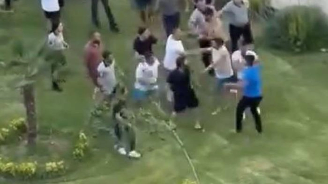 Olay, dün akşam üzeri Esenyurt’ta bulunan bir sitede meydana geldi. İddiaya göre, sitede oturan 2 yabancı uyruklu şahıs bonesiz ve pantolonlarıyla havuza girmek istedi. Bu durumu gören görevliler şahısların yanına giderek uyardı. Duruma sinirlenen şahıslar, güvenlik görevlilerini tehdit edip "Benim paramla maaş alıyorsunuz sizi buradan çıkartmam" deyince ortalık karıştı. Görevliler ile site sakinleri bir anda birbirine girdi. Havuz başında tekme yumruklar havada uçuştu. Kavgaya sitede oturan diğer vatandaşlarda dahil oldu. Taraflar birbirlerine havuz başında şezlongları fırlattı.
