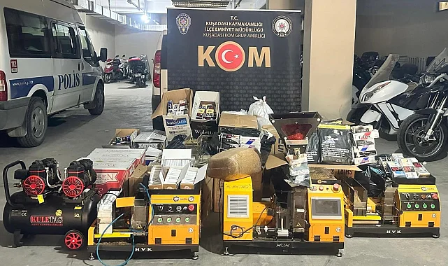 Kuşadası İlçe Emniyet Müdürlüğü Kaçakçılık ve Organize Suçlarla Mücadele Grup Amirliği ekipleri ve İlçe Tarım Müdürlüğü görevlilerinin ortak çalışması sonucu Davutlar Mahallesi'nde kaçak sigara imalatı yapıldığı tespit edilerek operasyon düzenlendi. Operasyonda yapılan aramalarda, 4 adet sigara sarma makinası, 1 adet kompresör, 175 kilogram tütün, 69 bin 400 adet boş makaron, 10 bin adet doldurulmuş sigara, 14 bin adet boş sigara paketi ele geçirildi. Ele geçirilen bu malzemelere el konuldu. Operasyonda yakalanan M.T. isimli şahıs hakkında gerekli yasal işlemlere başlanıldı.