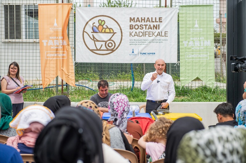 İzmir Büyükşehir Belediye Başkanı Tunç Soyer, Kadifekale'de kurulan Mahalle Bostanı'nın yeni hak sahiplerinin belirlenmesi için düzenlenen kura çekimine katıldı. Başkan Tunç Soyer kadınların üretmeye devam etmesini isteyerek, “Burada ürettiklerinizi siz tüketiyorsunuz. Ama satmak isterseniz biz satın alacağız. Aile ekonomisine de katkınız olacak” dedi.
