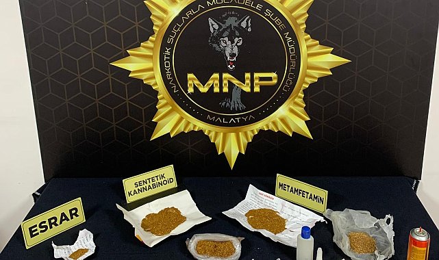Malatya'da, İl Emniyet Müdürlüğü Narkotik Suçlarla Mücadele Şube Müdürlüğü ile İstihbarat Şube Müdürlüğü görevlilerince torbacı olarak tabir edilen uyuşturucu satıcılarına yönelik operasyon düzenlendi. Bir işyeri, 1 ikamet ve 7 hedef şahsa yönelik düzenlenen operasyonlarda 666 gram skunk maddesi, 8 parça halinde 61,42 gram sentetik kannabinoid maddesi, 2.14 gram esrar maddesi, 12 adet sentetik ecza maddesi, 1,20 gram toz esrar maddesi, 0,60 gram metamfetamin maddesi, 3 parça halinde 1,55 gram kenevir tohumu, uyuşturucu madde yapımında kullanılan 2 tüp kimyasal madde ile 2 adet hassas terazi ele geçirilirken 5 zanlı gözaltına alındı.
