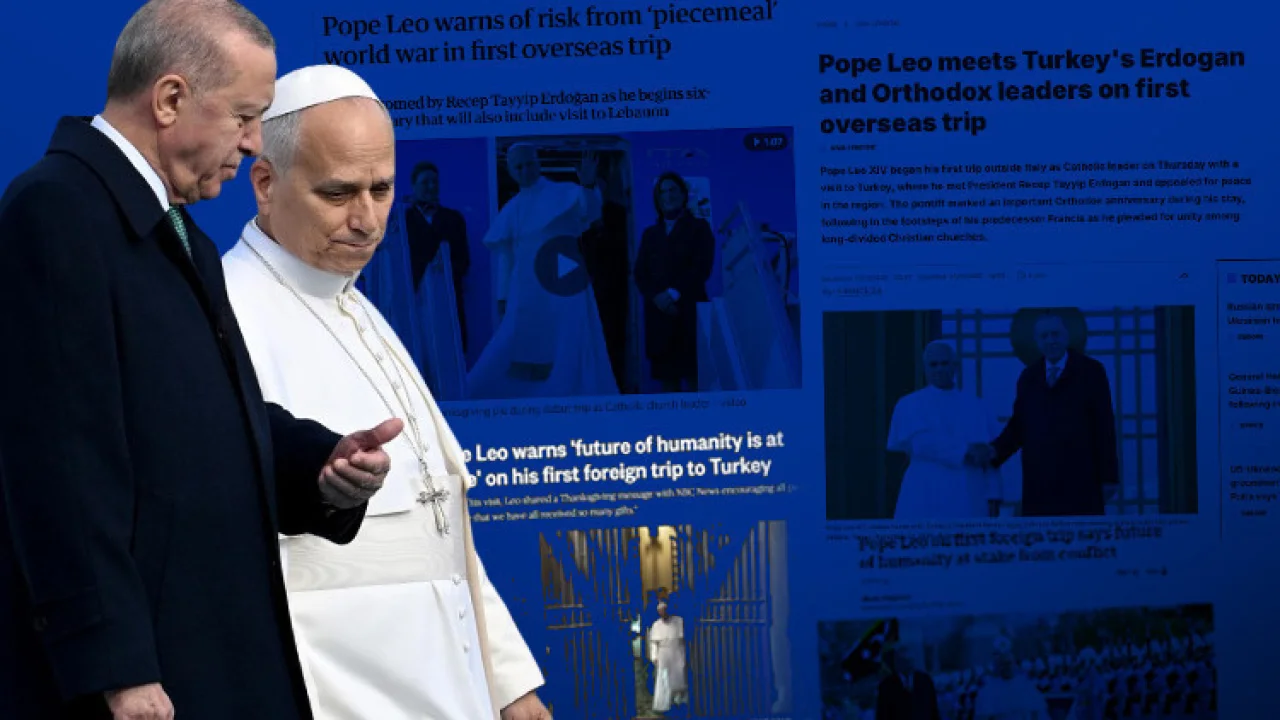 "Papa 14. Leo, Türkiye ziyaretinde dünyanın “küresel ölçekte artan bir çatışma düzeyine teslim olmaması gerektiği” uyarısında bulundu. Papa, “İnsanlığın geleceği tehlikede” diyerek, diyalog ve istikrarın teşvik edilmesi gerektiğine dikkat çekip Cumhurbaşkanı Recep Tayyip Erdoğan’ın istikrar kaynağı olarak rol üstlenmesi çağrısında bulundu.