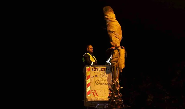 Sakarya Büyükşehir Belediyesi, şehir merkezinin süsü olan palmiye ağaçlarını kış mevsiminin dondurucu soğuklarından için üzerlerini tek tek kapatarak koruyor.