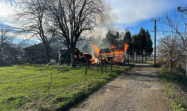 Sakarya'nın Akyazı ilçesinde bir vatandaşın evin bahçesinde bulunan samanlık alev alev yandı.