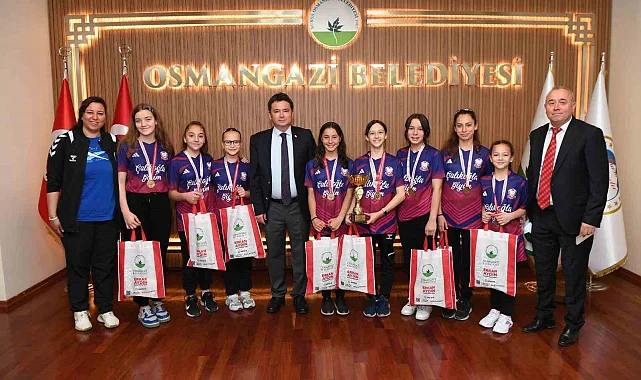 Katıldıkları yüzme yarışlarında Türkiye şampiyonu olan Sabiha Köstem Okulu sporcuları Osmangazi Belediye Başkanı Erkan Aydın'ı ziyaret etti.