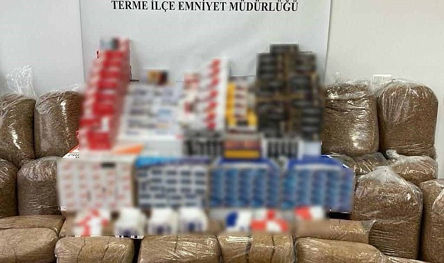 Edinilen bilgiye göre, Samsun'un Terme ilçesinde Terme İlçe Emniyet Müdürlüğü ekipleri, Fenk Mahallesi'ndeki bir işyeri ve işyerine ait depoya operasyon düzenledi. Yapılan aramalarda, 1 ton 360 kilo kaçak tütün, 61 bin 400 adet boş makaron, 52 bin 260 adet dolu makaron, 12 bin 400 adet çok amaçlı boş kutu ve 1600 adet manuel sigara sarma makinesi