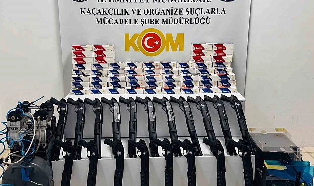 Edinilen bilgiye göre, Samsun Emniyet Müdürlüğü Kaçakçılık ve Organize Suçlarla Mücadele Şube Müdürlüğü ekipleri, Tekkeköy ilçesinde düzenledikleri operasyonda kaçak makaron ve ruhsatsız silahlara el koydu. H.B.Y. ve H.K.Y. isimli şahısların ikametgahı ve deposunda yapılan aramada, 19 adet ruhsatsız pompalı tüfek, 25 bin 200 adet makaron, 2 bin 200 adet makaron sigara, 1 adet elektrikli sigara sarma makinesi ve 1 adet kompresör ele geçirildi. Olayla ilgili H.B.Y. ve H.K.Y. gözaltına alındı. Soruşturma devam ediyor.