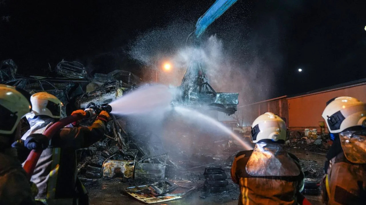 Alevler, hurda araçlara sıçradı.