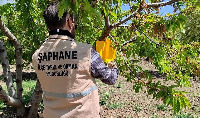 Kütahya'nın Şaphane ilçesinde İlçe Tarım ve Orman Müdürlüğünce kiraz bahçelerinde Kiraz Sineği zararlısı ile mücadele çalışmaları çerçevesinde feromon tuzakları yerleştirme işlemleri yapıldığı bildirildi.